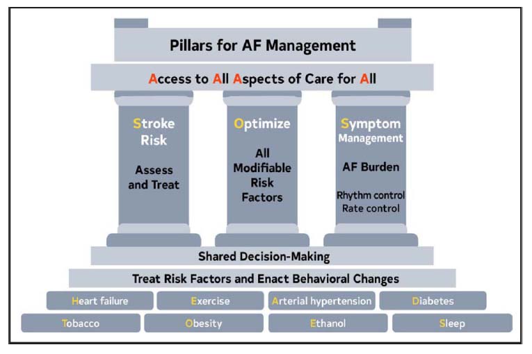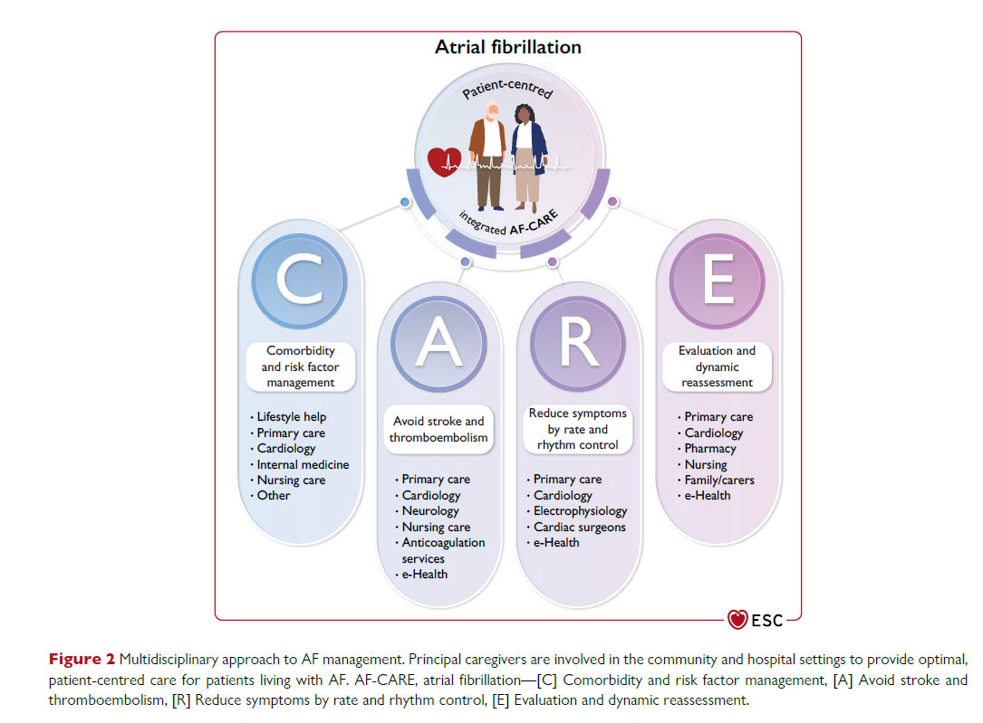 心房細動のすべての患者において、管理を最適化し、転帰を改善するために、多職種アプローチによる患者中心の心房細動管理を検討する必要があります。