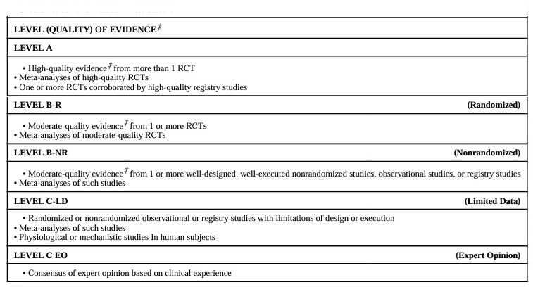| 米国のガイドライン | 推奨度 | エビデンスレベル |
