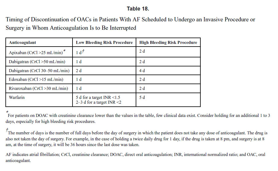 | 3.血栓塞栓症リスクが高い心房細動患者では、術中虚血性脳卒中および血栓塞栓症を予防するため、カテーテルアブレーションの少なくとも3週間前から経口抗凝固薬の投与を開始することが推奨されます。 | I | C |
