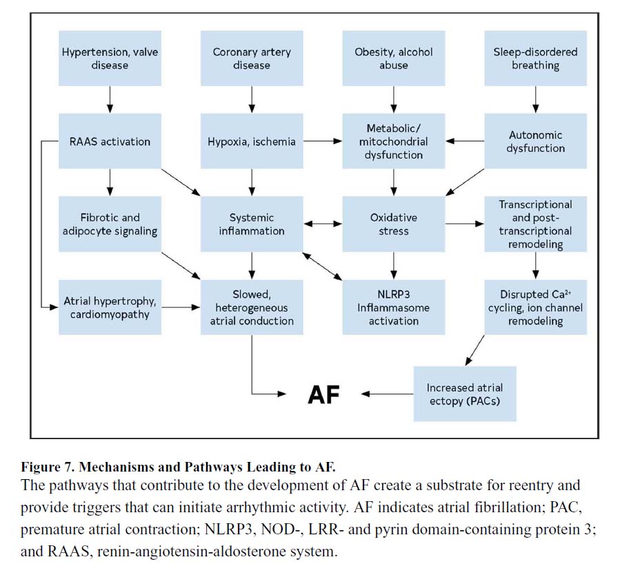 心不全は、心房細動患者の予後の主要な決定要因であり、心房細動の再発と進行に関連する重要な要素です。フラミンガムコホートでの30年間の追跡期間中、新たな心不全の患者の57%が心房細動を併発し、新たな心房細動の患者の37%が心不全を発症しました。心不全の適切な管理は、例えば、有害な心房および心室心筋のリモデリングを減らすことにより、心房細動の再発を減らす可能性がありますが、特定の治療法に関するデータは限られています。