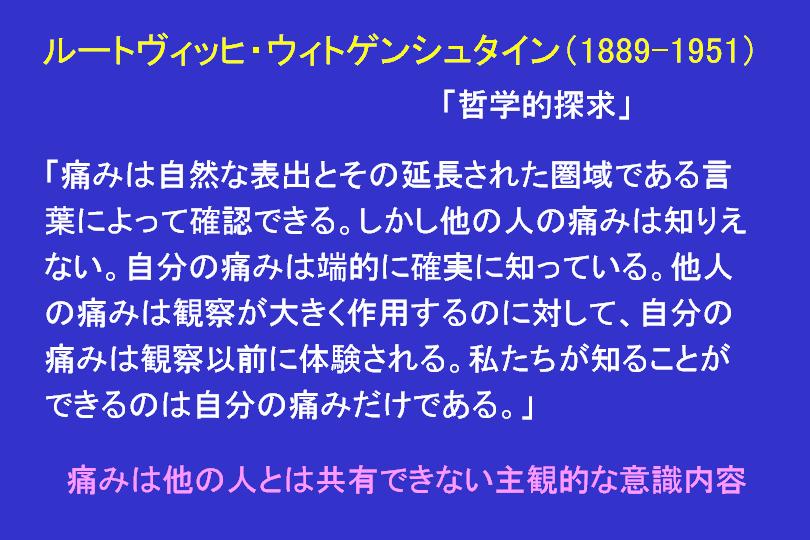以前は(白く表示)、痛み刺激が体性感覚野に到達した後に、大脳辺縁系に信号が行く、すなわち、「痛いから不快な情動が生じる」、と考えられていました。今では、痛み自体を情動のひとつと捕らえるようになりました。