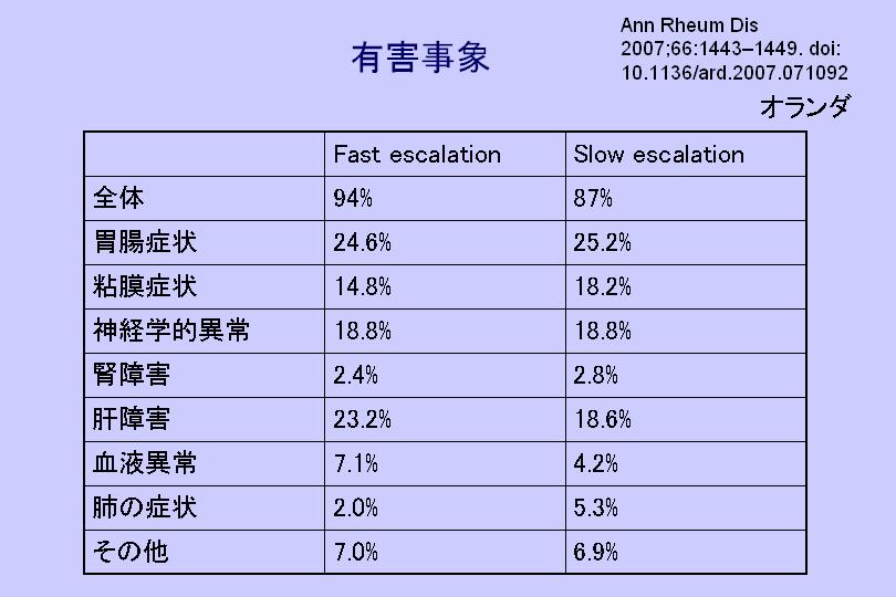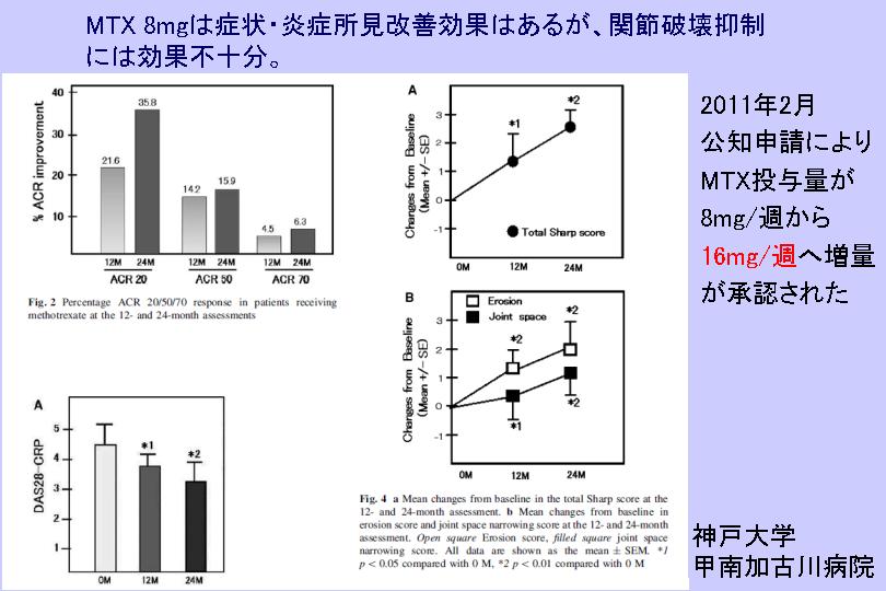 日本でもMTX投与量が多ければ多い程、関節リウマチに対する有効性が確認されました。