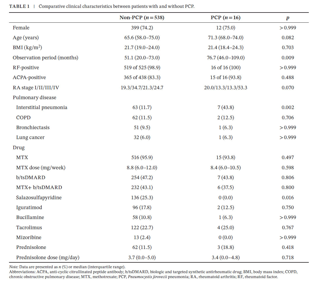4】Risk Factors for Pneumocystis jirovecii Pneumonia in Rheumatoid Arthritis: The Protective Potential of Salazosulfapyridine. Int J Rheum Dis 2025; 28:e70318. https://doi.org/10.1111/1756-185X.70318
