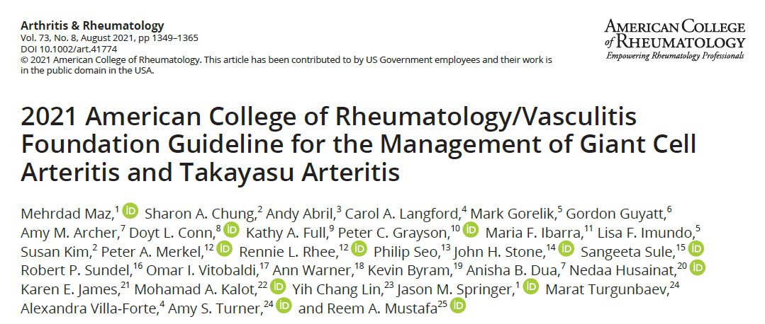 2021年に米国リウマチ学会(ACR)から高安動脈炎の診療ガイドラインが出された。ただし、エビデンスレベルはlow - very lowであるため、注意して使用する必要がある。