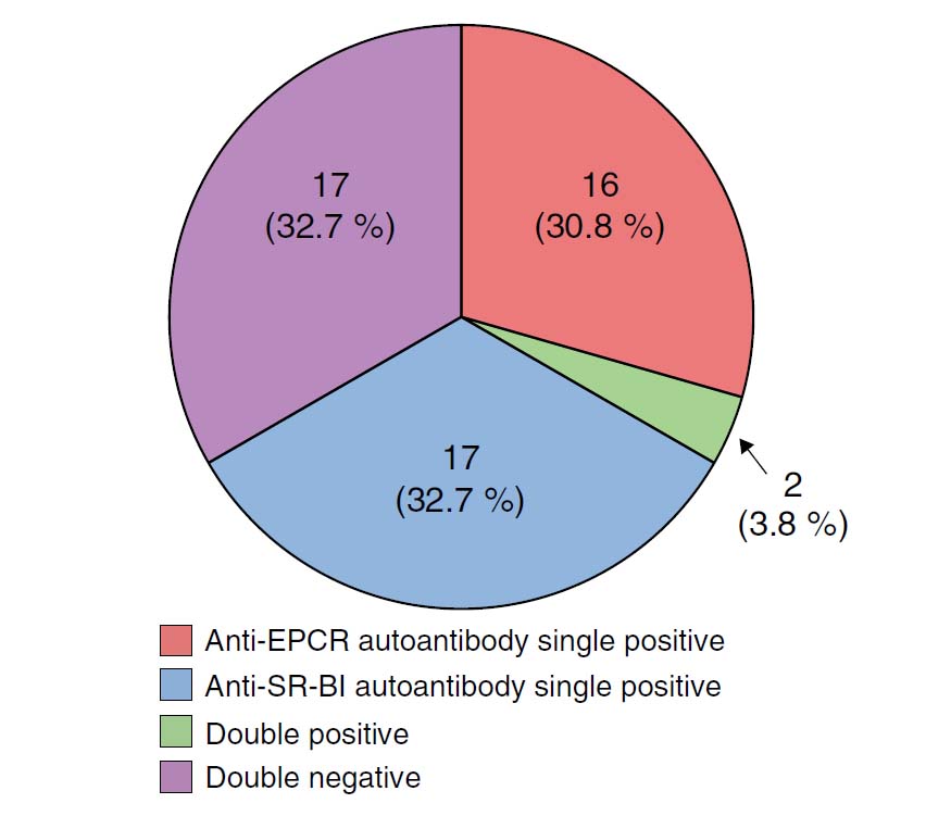 高安動脈炎の自己抗原としてプロテインC 受容体EPCRとスカベンジャー受容体SR-BIを世界で初めて同定した。これらに対する自己抗体は、膠原病では高安動脈炎に特異的で、EPCR に対する抗体がある患者(30.8%)では腕頭動脈の罹患、脳血管障害の発症、潰瘍性大腸炎の合併が多く認められた。一方、SR-BI に対する抗体がある患者(32.7%)では、広範囲にわたり血管が傷害され、強い炎症を示した。